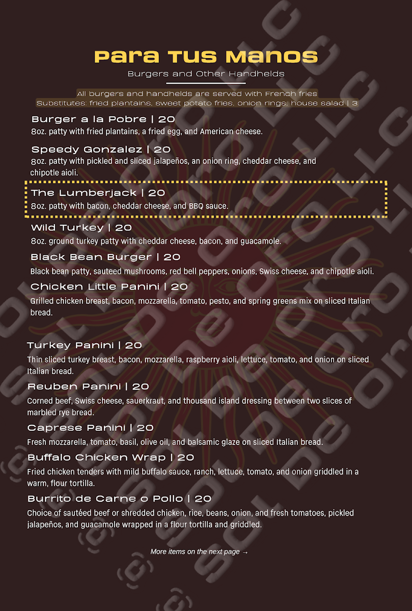 8 oz burger, LTO, fried plantain, fried egg, American cheese.