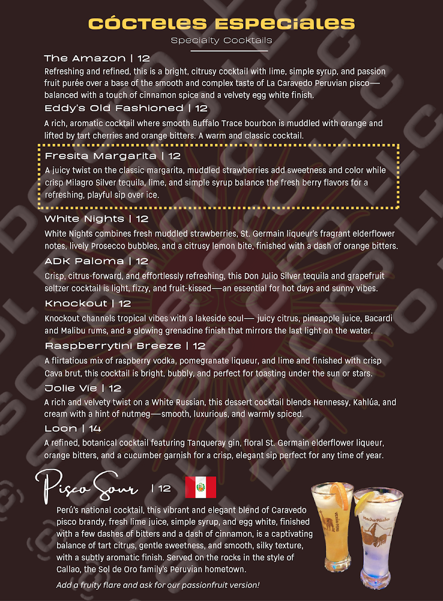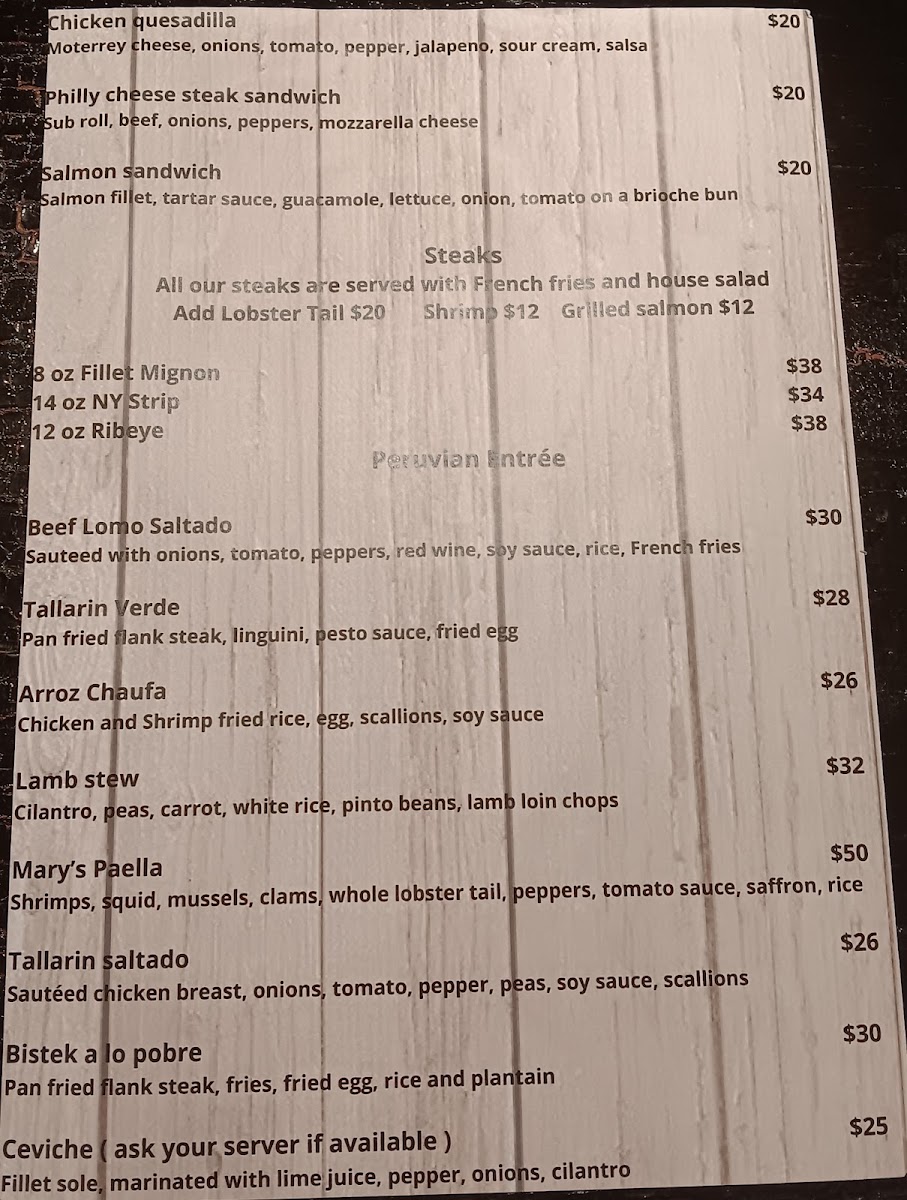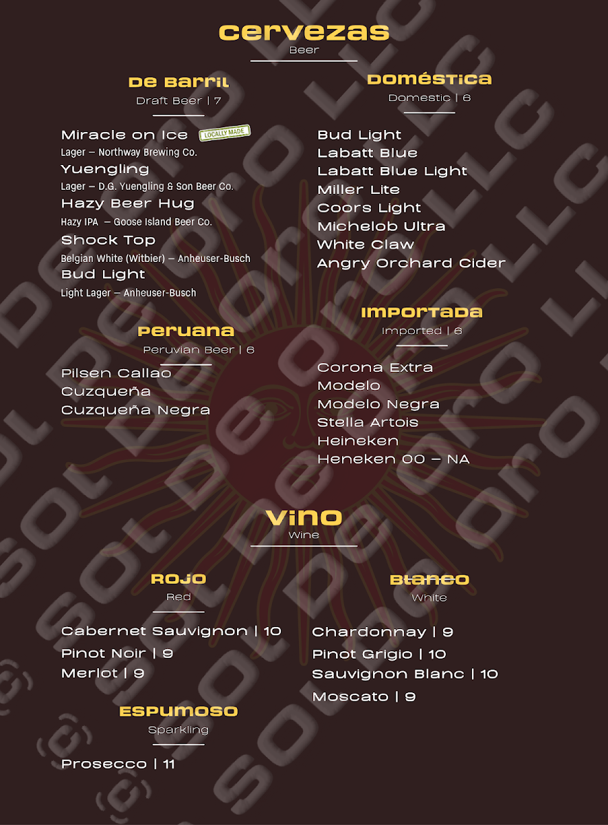 Sautéed beef, onions, tomato, peppers, red wine, soy sauce, rice, & french fries.